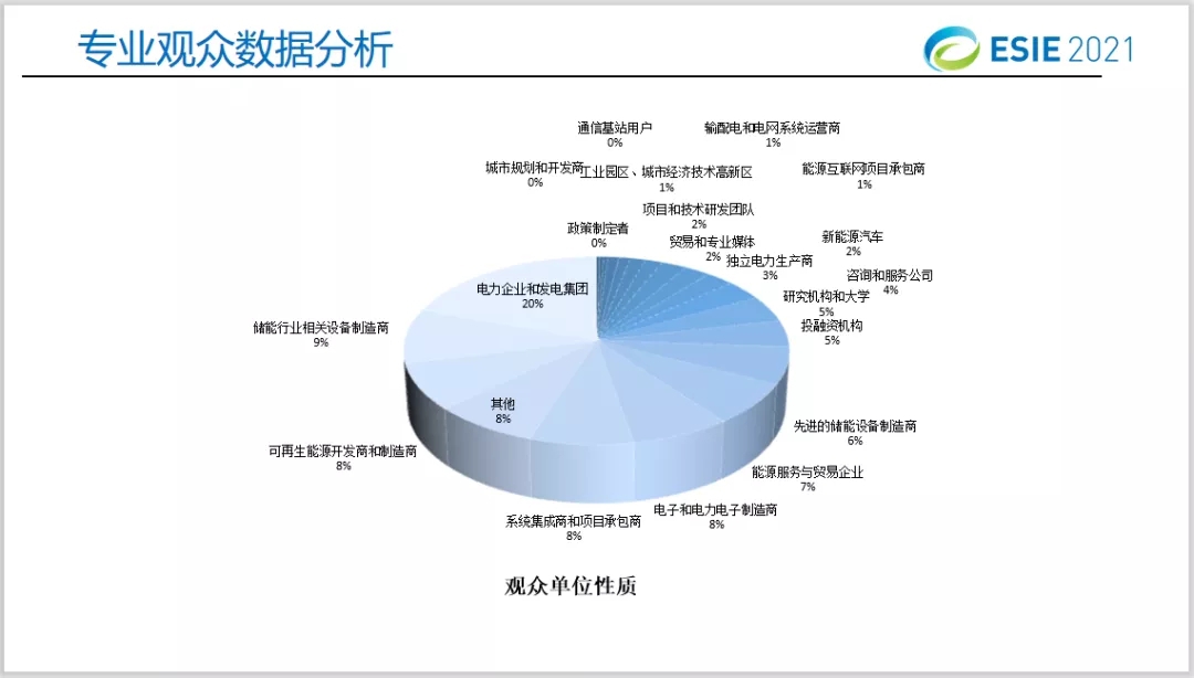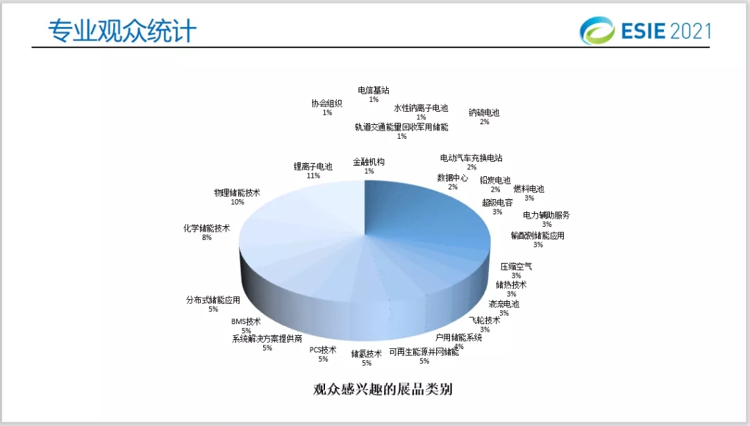 2021年,第十届储能国际峰会暨展览会(ESIE 2021)展览面积超过11000平米,专业观众达30000人次;