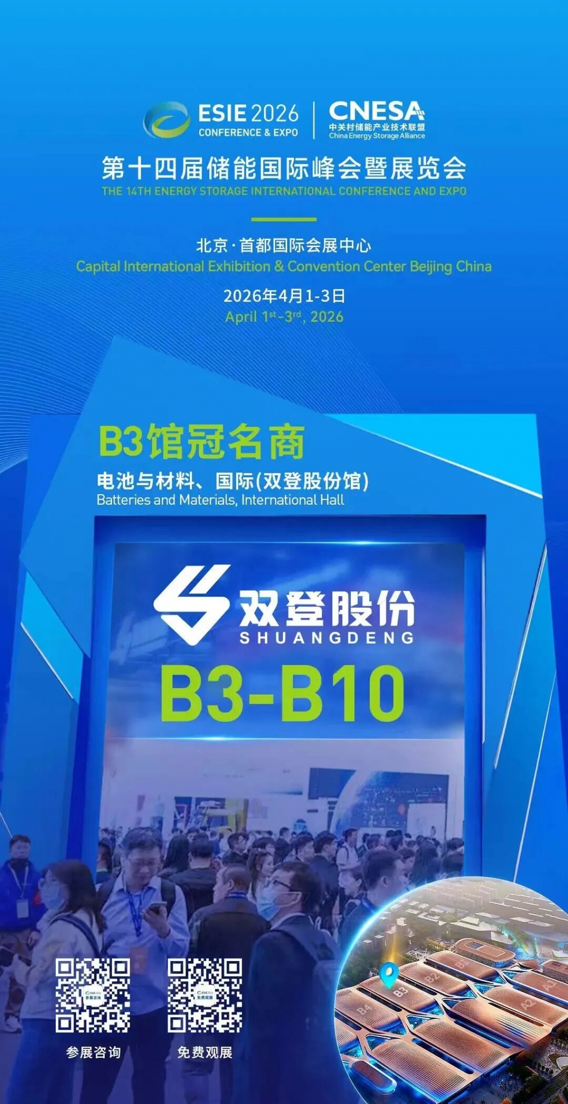由中关村储能产业技术联盟、中国能源研究会、中国科学院工程热物理研究所主办,加州储能联盟(CESA)、欧洲储能联盟(ESEA)、阿拉伯可再生能源委员会(AREC)、澳大利亚可再生能源协会(AREA)等20多家国际机构和组织联合支持的第十四届储能国际峰会暨展览会ESIE 2026将于2026年4月1-3日在北京·首都国际会展中心举办。本届峰会展览面积达160000平米,开设六大主题展馆,将汇聚1000+展商/赞助商、5000+产业链上下游企业,吸引专业观众200000+人次。