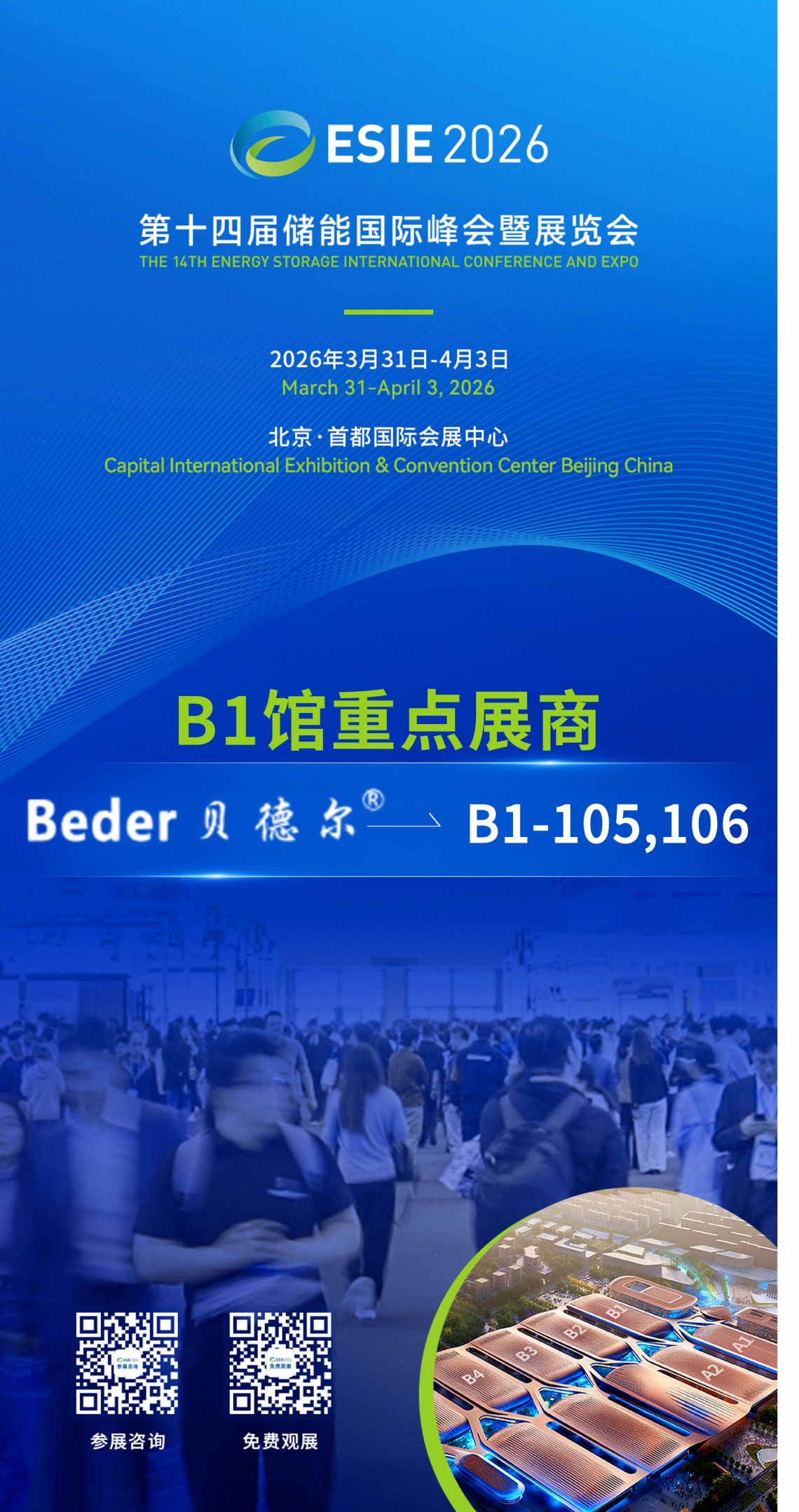 2026年3月31日-4月3日,北京・首都国际会展中心,ESIE 2026储能展B1105,B1106展位,宁波贝德尔将带来哪些储能创新产品?让我们拭目以待,共赴ESIE 2026全球储能产业盛会!