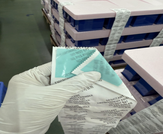 2) 方案:除控制仓库整体湿度外,对于长期存储的电池Pack,建议套上防潮罩或放入大型防潮袋中形成“二次密封”,防潮袋内部放置物理吸附类干燥剂(可直接接触电池Pack, 无腐蚀风险)。
