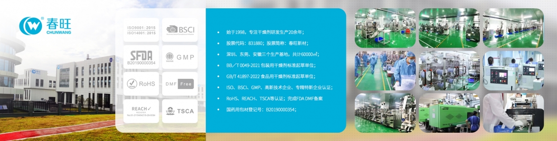 公司集研发、生产、销售为一体,主要致力于工业产品防潮;食品药品防潮、保鲜家居防潮、防虫、空气净化等环保吸附系列产品,是专注防潮、保鲜、空气净化系统解决方案的制造商。 产品销往两岸三地及欧美、东南亚等100多个国家和地区,并与众多行业知名企业达成长期合作关系。