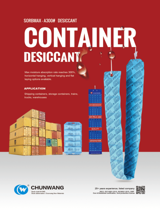 推荐产品:集装箱干燥棒、集装箱干燥条、集装箱干燥毯、可粘贴式氯化镁干燥剂、硅胶干燥剂、蒙脱石干燥剂、湿度指示卡。