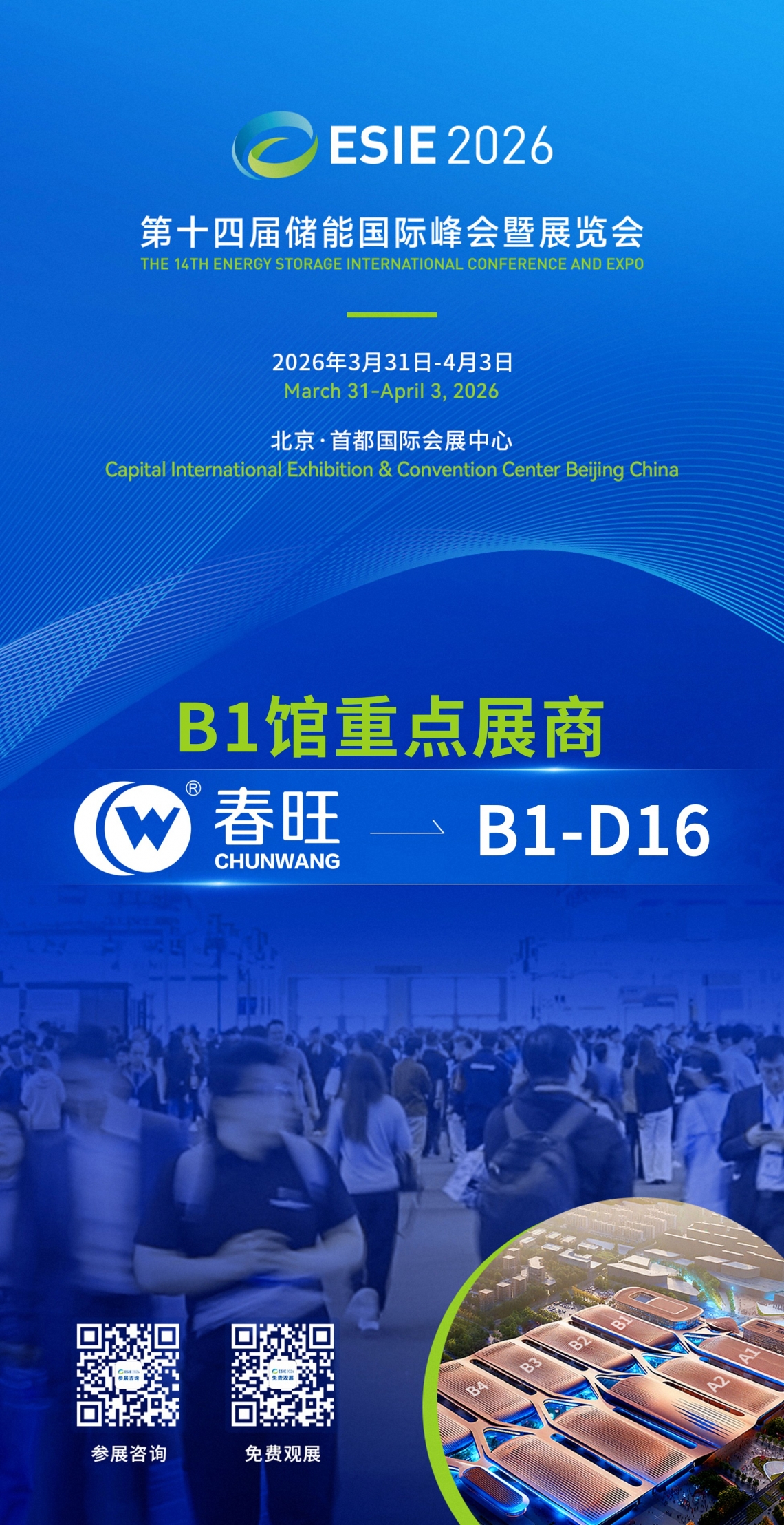 2026年3月31日-4月3日,北京・首都国际会展中心,ESIE 2026储能展B1-D16展位,春旺新材将带来哪些储能创新产品?让我们拭目以待,共赴ESIE 2026全球储能产业盛会!