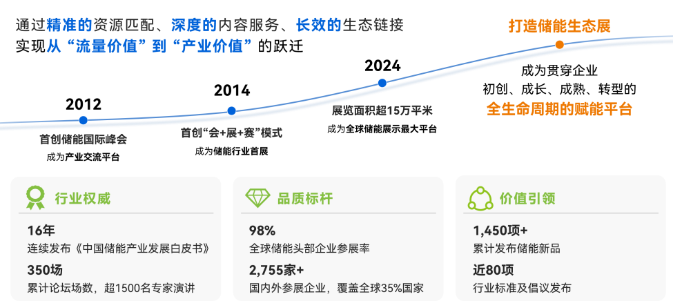 “储能国际峰会暨展览会”项目由中关村储能产业技术联盟在2012年创办,见证了中国储能产业发展的每一个重要阶段,已成为全球规模最大,影响力最强的国际性储能会展。