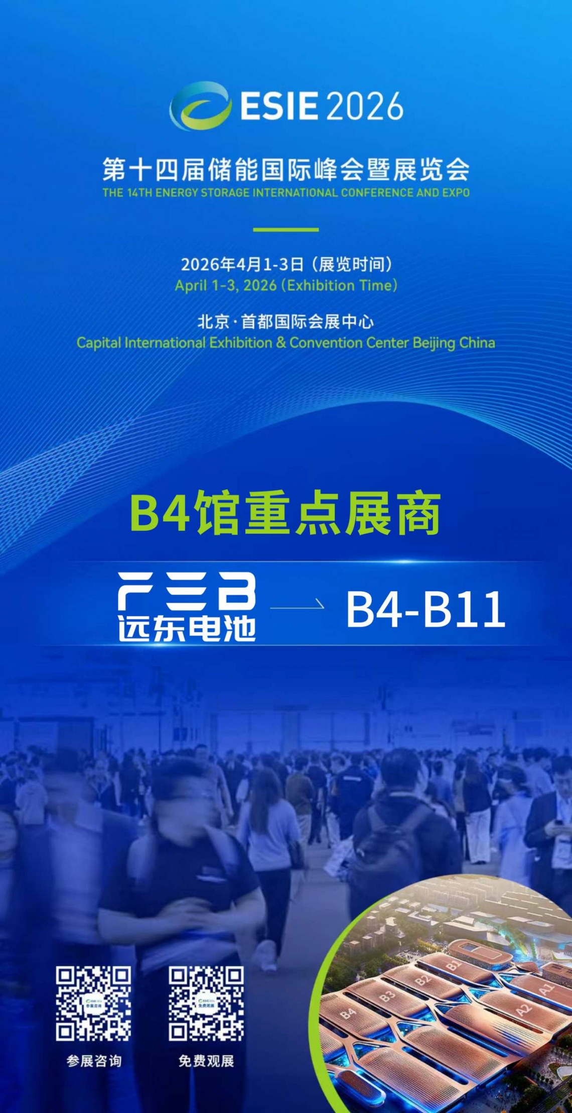 4月1日-4月3日,北京・首都国际会展中心,ESIE 2026储能展B4-B11展位,远东电池将带来哪些储能创新产品?让我们拭目以待,共赴ESIE 2026全球储能产业盛会!