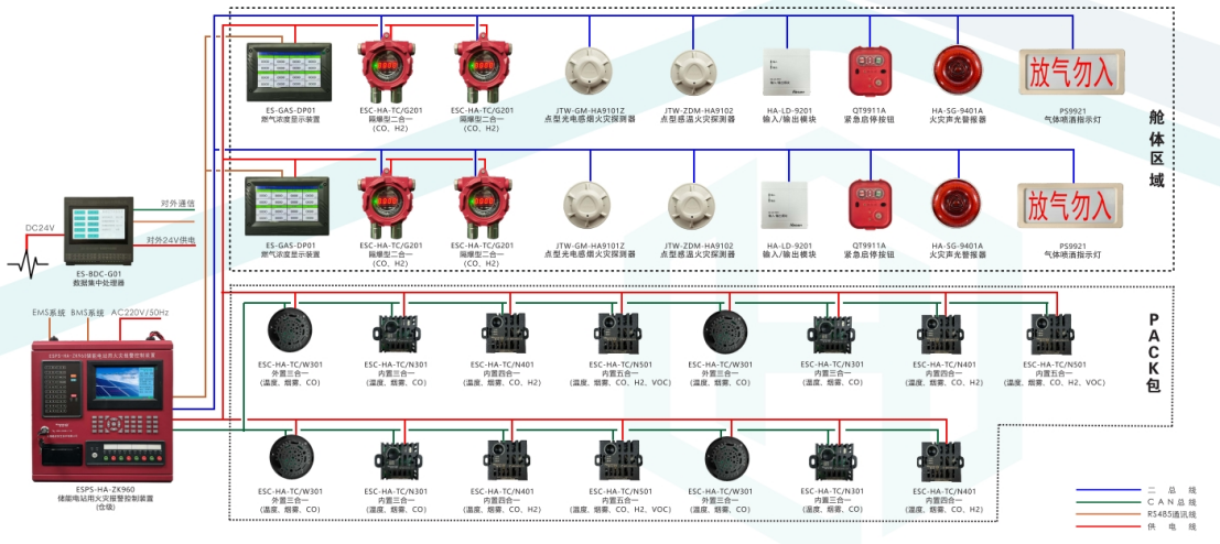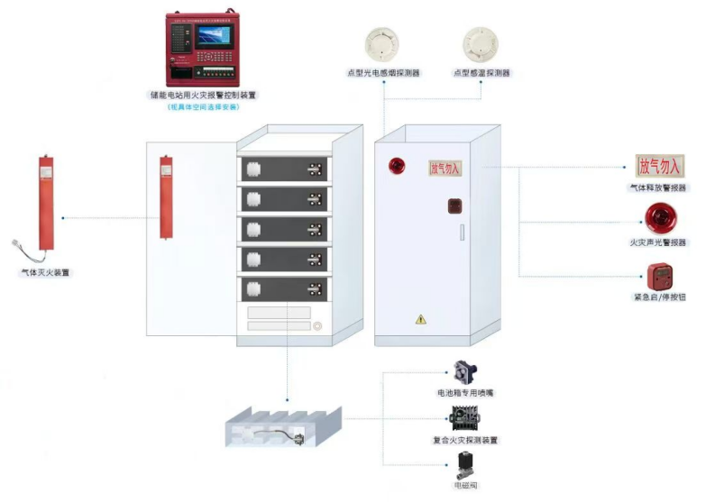 双介质协同:全氟己酮与细水雾二合一系统,前者快速控火、后者持续降温,完美适配锂电池热失控特性;