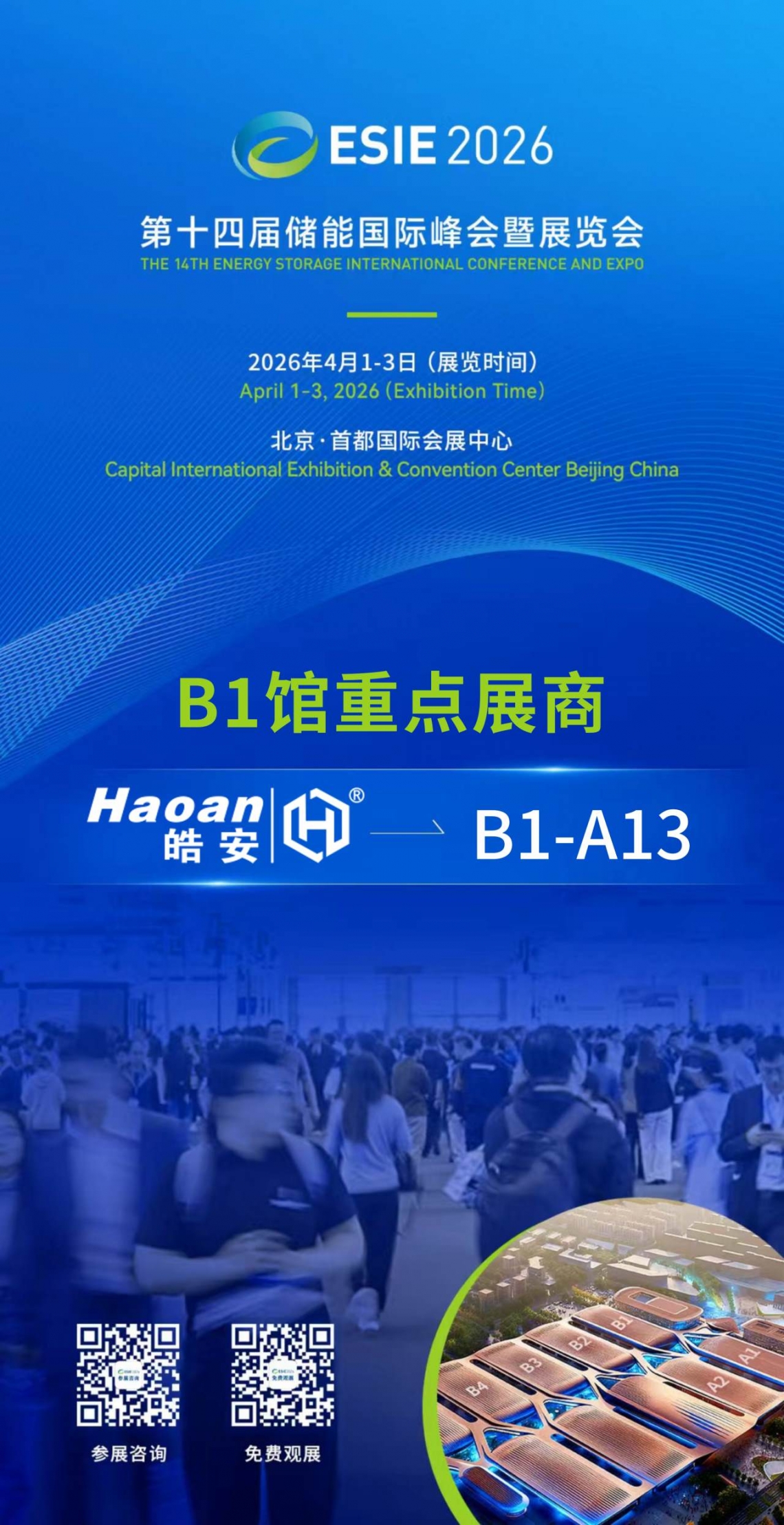 4月1日-4月3日,北京・首都国际会展中心,ESIE 2026储能展B1-A13展位,无锡皓安将带来哪些储能创新产品?让我们拭目以待,共赴ESIE 2026全球储能产业盛会!