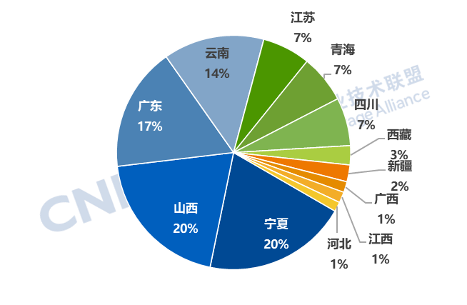 从省份分布来看,宁夏、山西新增装机功率规模并列第一,宁夏新增装机能量规模最大。