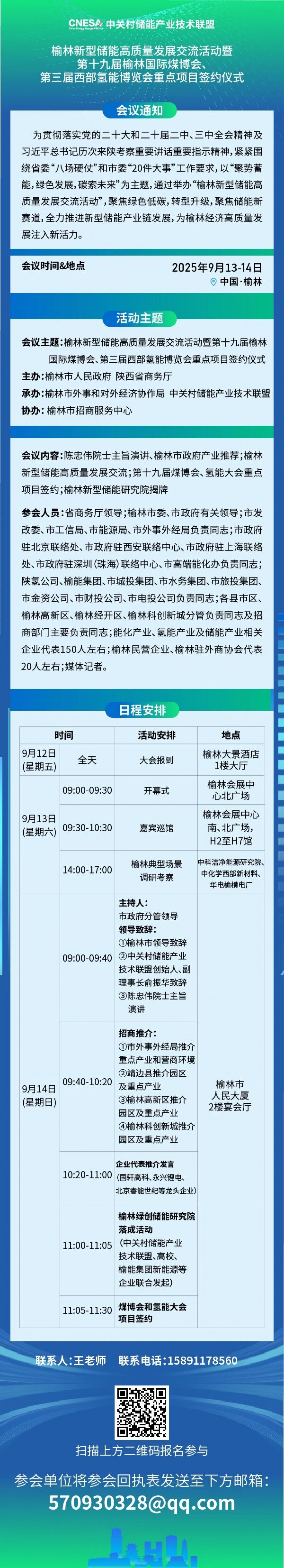 倒计时3天!榆林新型储能高质量发展交流活动暨第十九届煤博会、氢能大会重点项目签约仪式