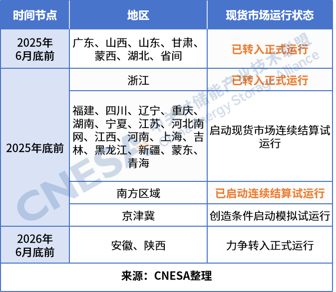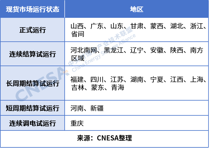 按照394号文件要求,2026年6月底前应转入正式运行的安徽和陕西,均已转入连续结算试运行;要求2025年底前启动连续结算试运行的辽宁、河北南网、黑龙江已陆续启动,福建、四川、湖南、宁夏、江苏、江西、河南、上海、吉林、新疆、蒙东、青海,则均已启动不同周期的结算试运行,重庆启动连续调电试运行。