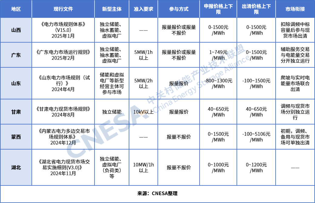 山东先后建立独立储能、新能源与其配建储能联合体参与现货市场的交易机制;