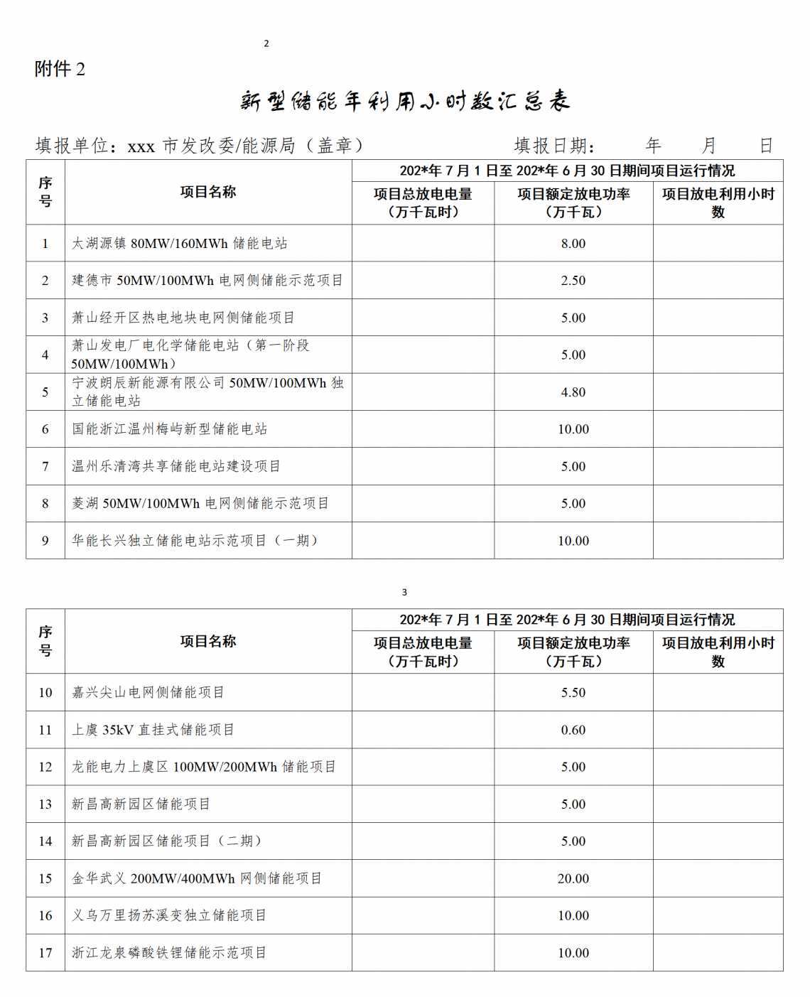 2.新型储能项目年利用小时数汇总表