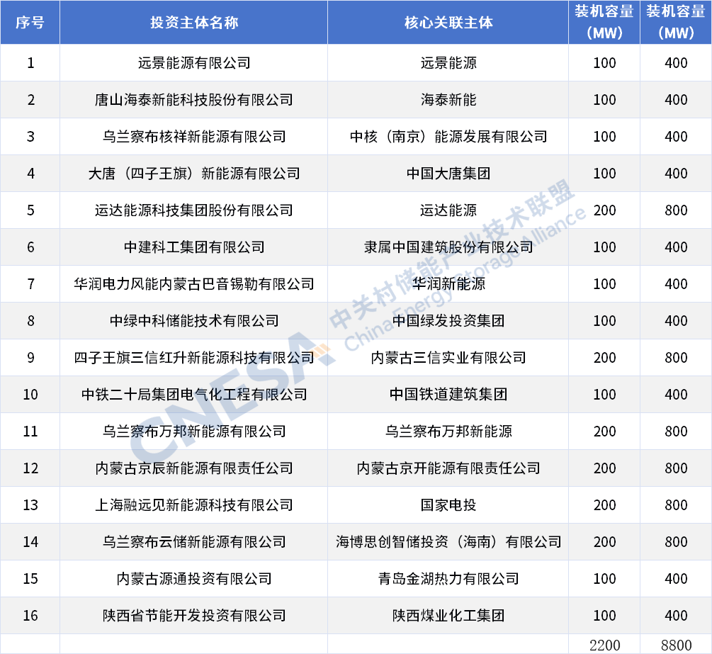 从投资主体来看,核心关联主体包括远景能源、海泰新能、中核南京、大唐、运达能源、中国建筑股份、华润新能源、中国绿发、中国铁道建筑、国家电投、海博思创智储投资、青岛金湖电力、陕西煤业化工等。