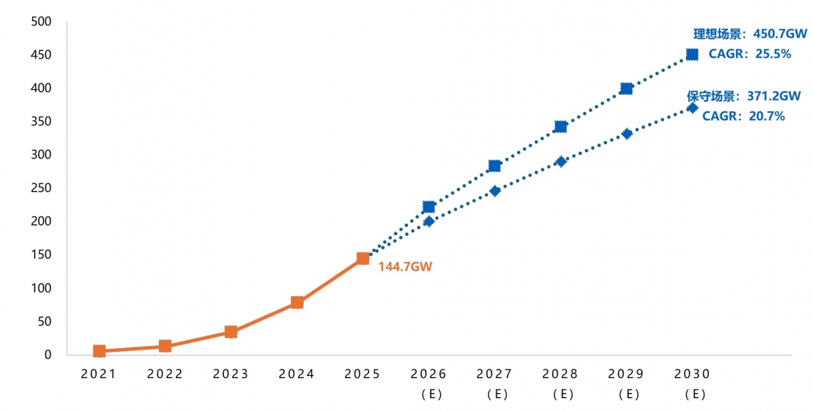 储能时长方面,CNESA统计显示,新型储能累计装机的平均时长在2021-2025年呈缓慢上升趋势,由2.11小时逐步增至2.58小时。2026年起,时长提升明显加速,预计至2030年将达到3.47小时。这一转折反映了储能技术持续进步与市场对长时储能需求的增强,行业正朝着能量时移、系统调节等更注重能量容量的应用场景深化发展。