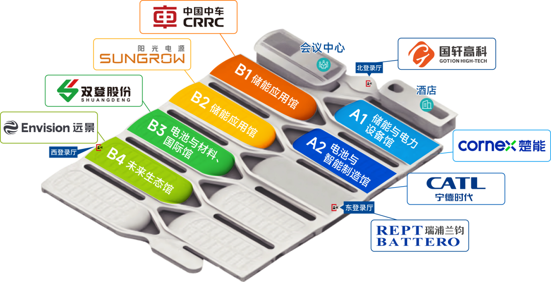 龙头齐聚,全链构建产业生态矩阵。全球头部储能企业悉数集结,构建起“先进材料—核心零部件—关键设备—系统集成—场景应用—配套服务”的完整生态矩阵。