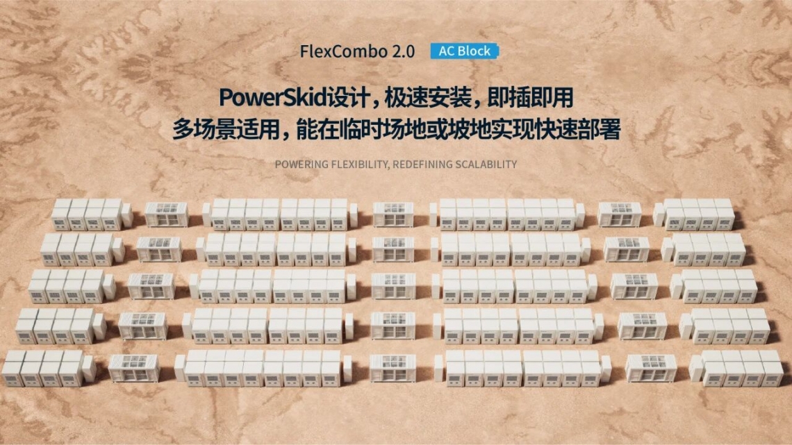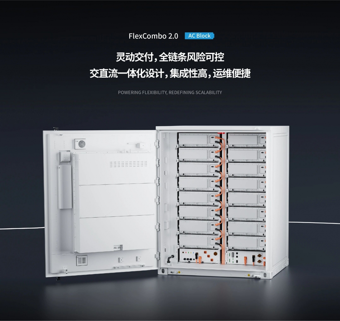 FlexCombo2.0采用交直流一体化设计(AC block),全系统预装预调,避免了传统直流仓和交流仓分离造成的现场工程链路长,安装调试慢,并网及售后牵扯多方设备商的问题。