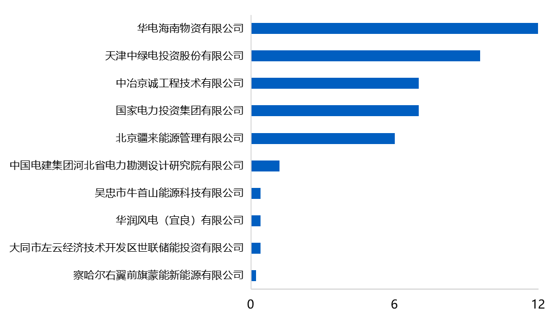 图3:2026年1月储能系统招标应用场景分布情况(单位:GWh%) 注:集采/框采因尚未明确项目的具体应用场景,暂单独按一类应用类型统计。数据来源:CNESA Datalink全球储能数据库https://www.esresearch.com.cn/ 04 招标主体(含集采/招采): 从招标主体数量上看,储能系统招标主体共62家,同比-8.8%,环比-22.5%;EPC招标主体共130家,同比+18.2%,环比-13.9%。 从招标主体规模上看,储能系统方面,华电海南物资有限公司招标规模位列第一,规模达12GWh;EPC方面,宁夏鹏洋绿能科技有限公司灵武分公司位列第一。 图4:2026年1月储能系统招规模Top10招标主体情况(单位:GWh) 数据来源:CNESA Datalink全球储能数据库https://www.esresearch.com.cn/ 图5:2026年1月EPC招标规模Top10招标主体情况(单位:GWh) 若需获取更全面的招投标项目明细、历史数据回溯、定制化数据分析及深度行业洞察,欢迎登录【CNESA Datalink全球储能数据库】或搜索【全球储能数据库 小程序】查询,中关村储能产业技术联盟将为您提供全周期、高质量的储能招中标数据服务支持。