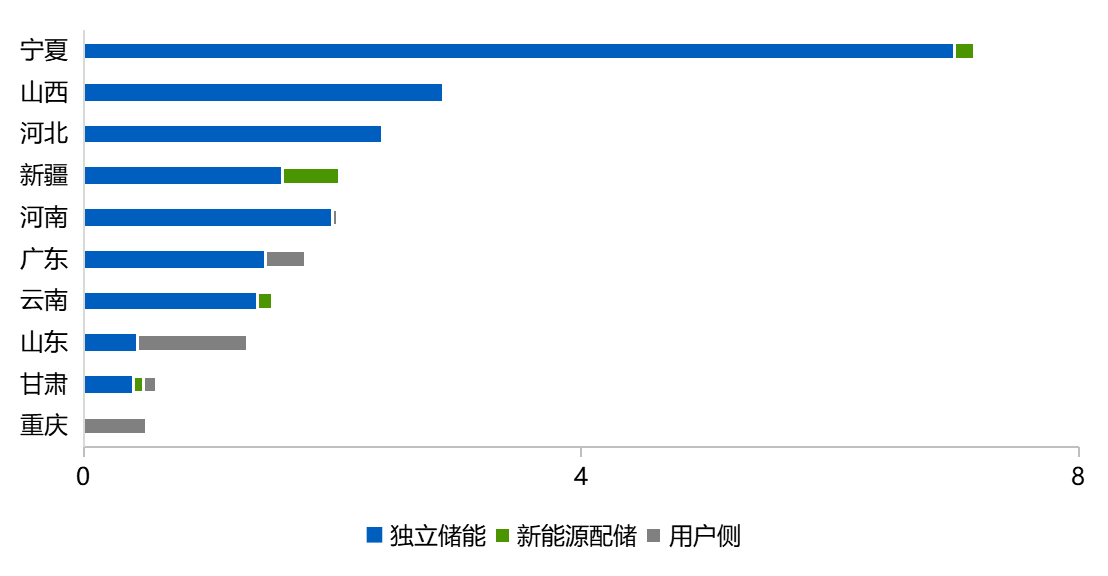 图1:2025年1月-2026年1月储能系统和EPC的中标规模情况(单位GWh) 数据来源:CNESA Datalink全球储能数据库https://www.esresearch.com.cn/ 02 区域分布: EPC招标宁夏全国第一,山东用户侧项目表现突出 从区域分布上看(不含集采/框采),1月,宁夏地区EPC招标规模达7.2GWh,领跑全国新型储能产业招标市场。当月在银川地区累计招标规模达4GWh,包括多个GWh级别项目启动招标。 从EPC招标规模Top10省份的应用分布来看,山东地区EPC项目招标能量总规模1.3GWh,用户侧总招标能量规模超800MWh,占山东省储能EPC招标总规模的61.5%,用户侧项目表现突出。主要包含菏泽曹县多个200MWh以上的项目,该批用户侧项目涵盖分布式储能、混合储能等多类技术路径。 图2:2026年1月EPC招标规模Top10省份分布情况(单位:GWh) 数据来源:CNESA Datalink全球储能数据库https://www.esresearch.com.cn/ 03 应用场景分布: 多名业主启动大规模集采/框采