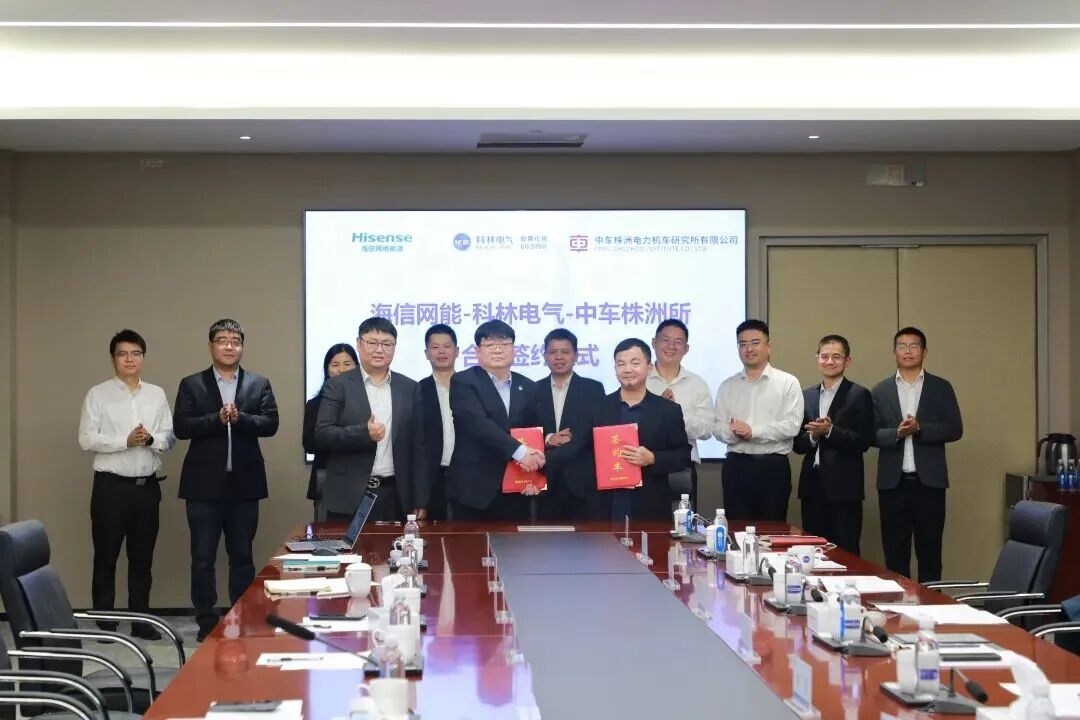 10月14日,石家庄科林电气股份有限公司(简称“科林电气”)、青岛海信网络能源股份有限公司(简称“海信网能”)、中车株洲电力机车研究所有限公司(简称“中车株洲所”)在科林产业园正式签署合作协议。