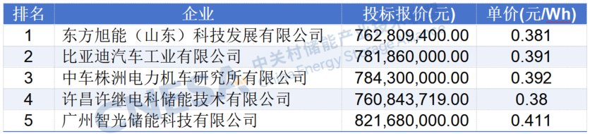 该标段(HNZB2025-10-1-249)报价区间约在0.416–0.523元/Wh。入围单位包括中车株洲所、智光储能、东方旭能、海博思创及平高集团。