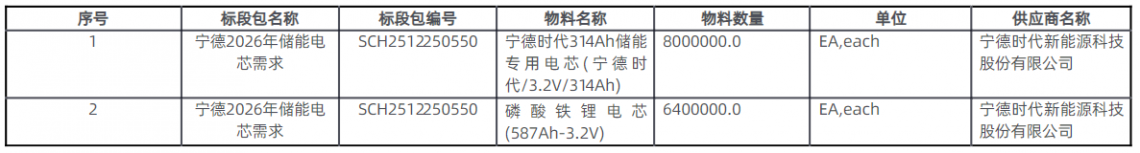 此次采购包含两个标段,分别采购314Ah和587Ah电芯。