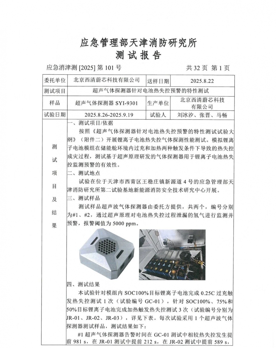 基于以上背景,北京西清能源科技有限公司(子公司:西清蔚芯)正式推出MEMS工艺超声气体探测器,并于2025年12月29日通过天消所应用场景测试并取得报告。该气体探测器依托500余项核心专利构建坚实技术壁垒,带来三大颠覆性优势: