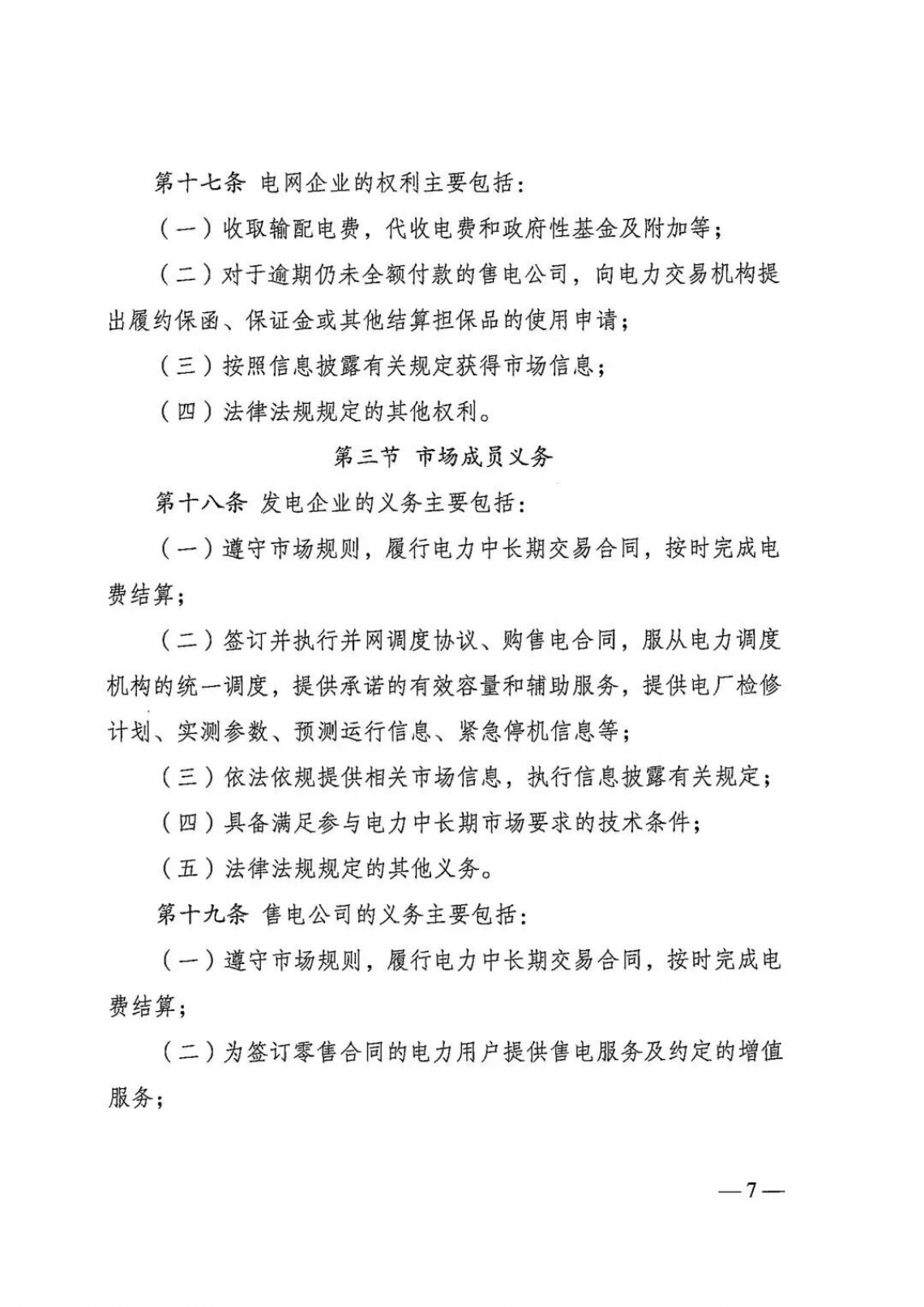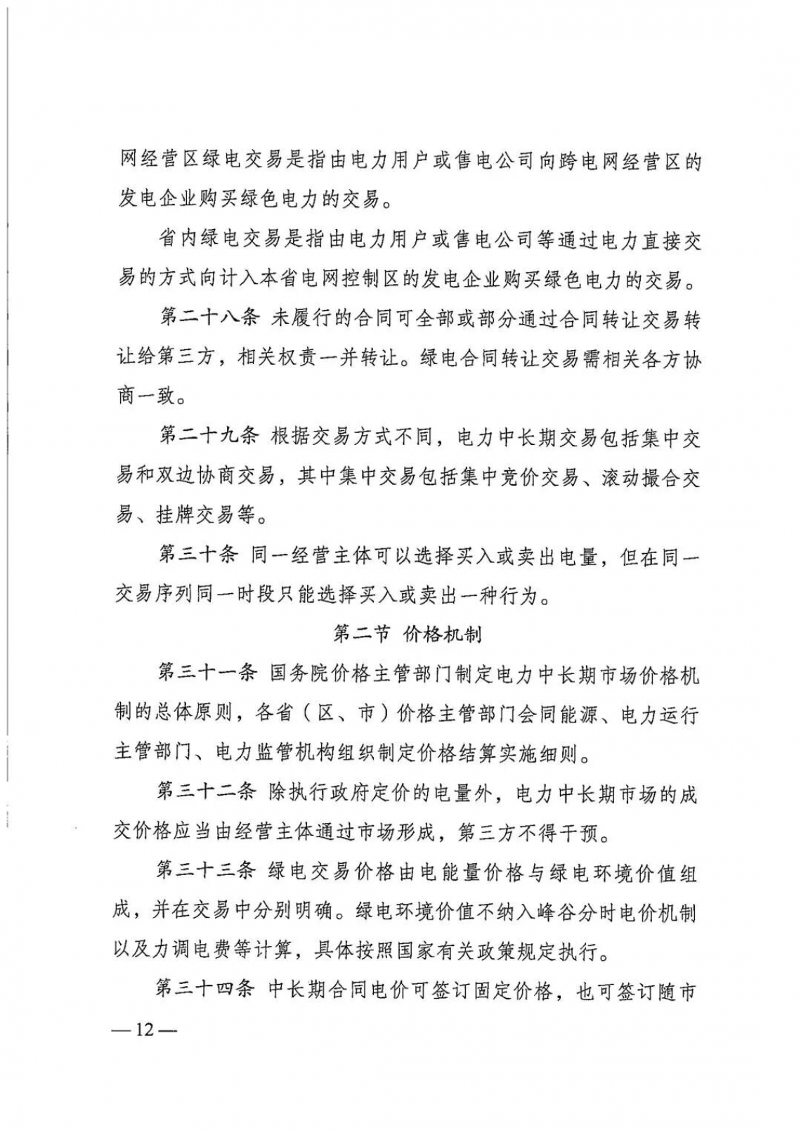 成交价格形成:除执行政府定价的电量外,成交价格由经营主体通过市场形成,第三方不得干预。