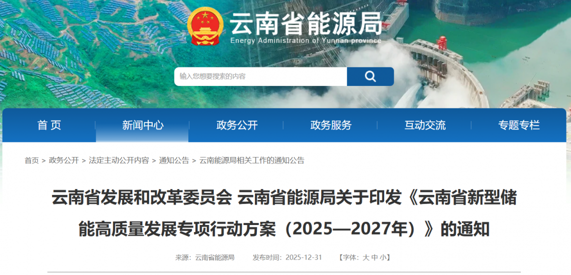 12月31日,云南省发展改革委、云南省能源局印发《云南省新型储能高质量发展专项行动方案(2025—2027年)》的通知,目标明确,路径清晰,核心要点速览: