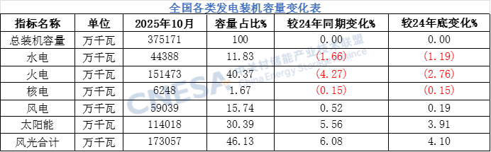 据国家能源局数据,截至2025年1-10月,全国累计新增发电装机容量已达37.5亿千瓦,同比增长17.3%。其中,太阳能发电装机容量11.4亿千瓦,同比增长43.8%;风电装机容量5.9亿千瓦,同比增长21.4%。风电、光伏累计装机容量已达17.3亿千瓦,新能源已从电力系统的“配角”稳步迈入“主角”行列。