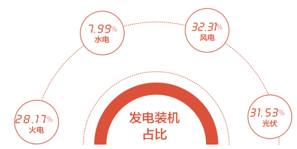 截至11月,全省发电装机容量12160.36万千瓦,同比增长27.12%。其中,水电971.99万千瓦,同比增长0.08%,占总装机比重(下同)为7.99%;火电装机3425.61万千瓦,同比增长36.42%,占28.17%;风电3928.76万千瓦,同比增长27.57%,占32.31%;太阳能3834.00万千瓦,同比增长27.64%,占31.53%。