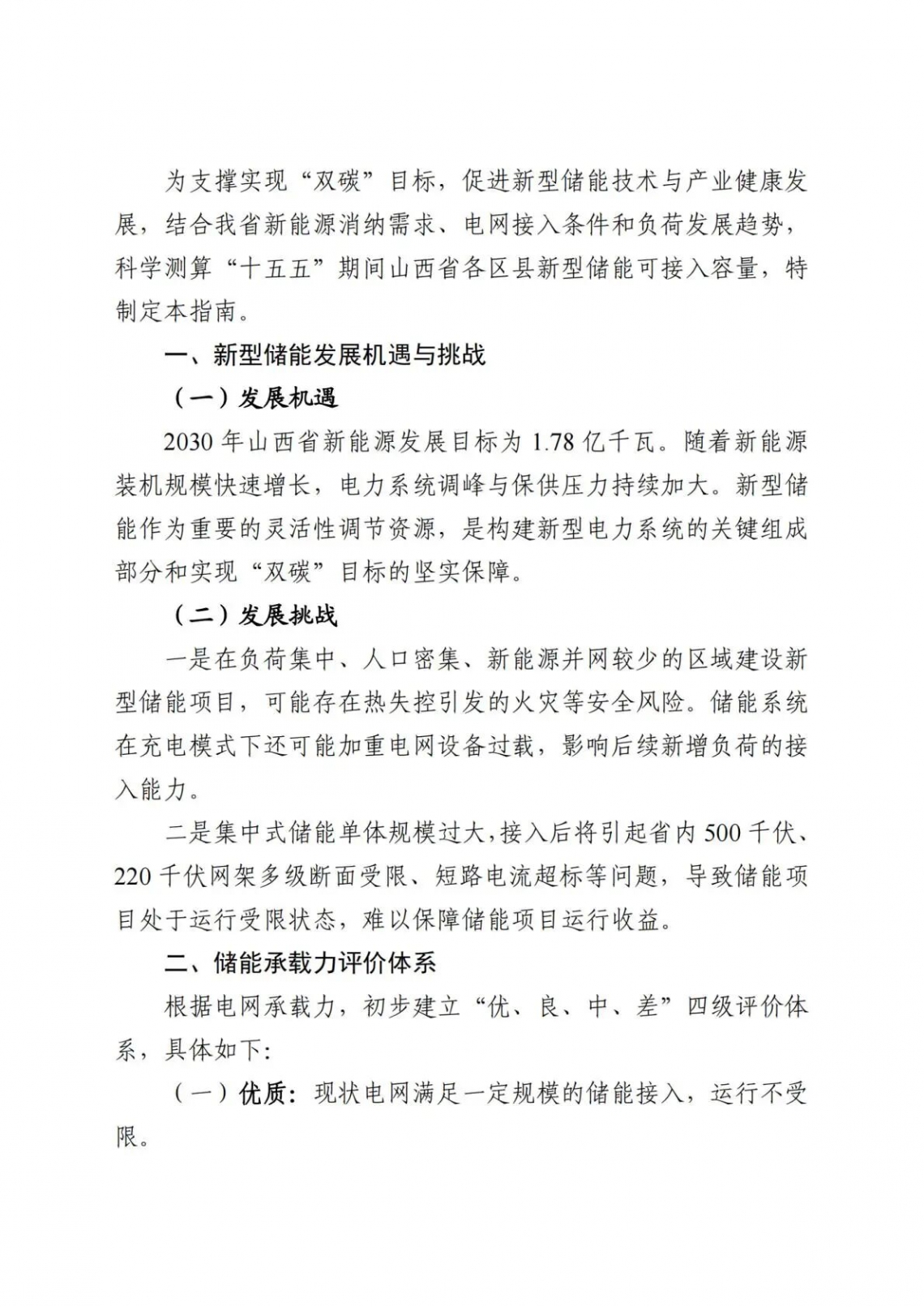 为支撑实现“双碳”目标,促进新型储能技术与产业健康发展,结合山西省新能源消纳需求、电网接入条件和负荷发展趋势, 科学测算“十五五”期间山西省各区县新型储能可接入容量,特制定本指南。