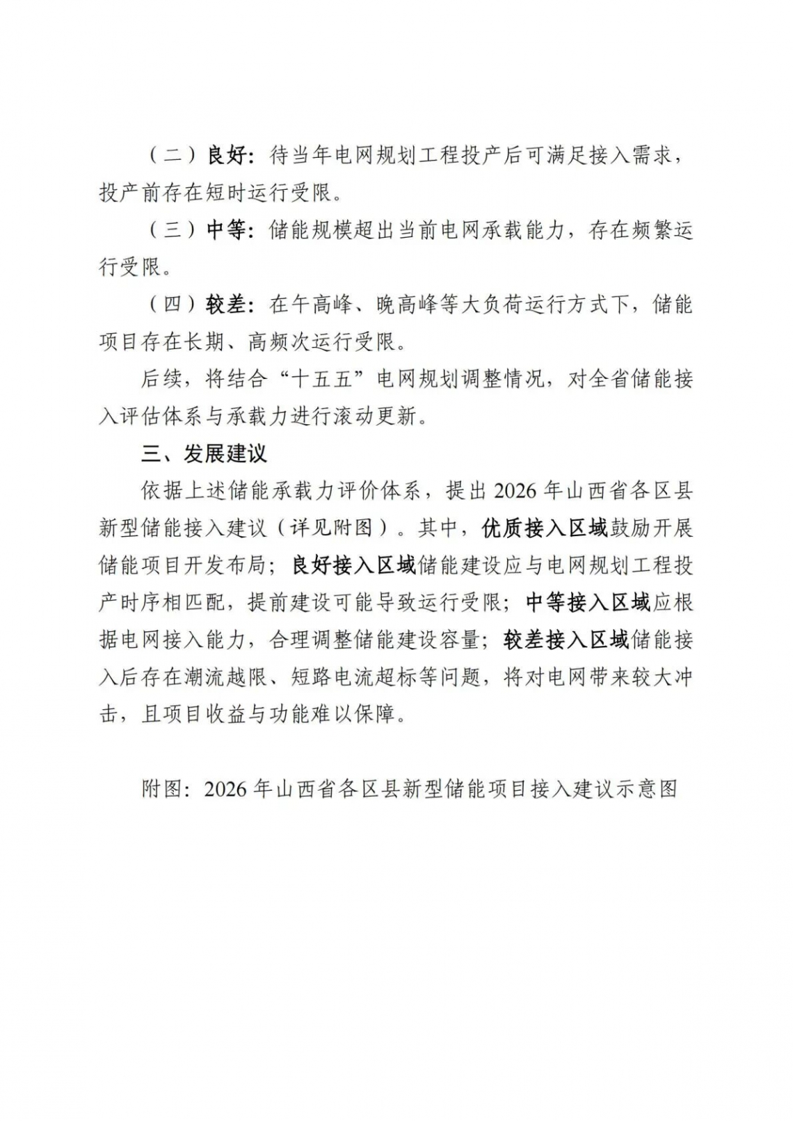 依据上述储能承载力评价体系,提出2026年山西省各区县 新型储能接入建议(详见附图)。