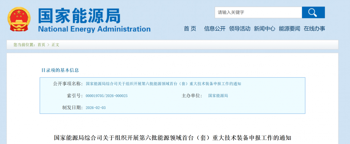 近日,国家能源局启动第六批能源领域首台(套)重大技术装备申报。