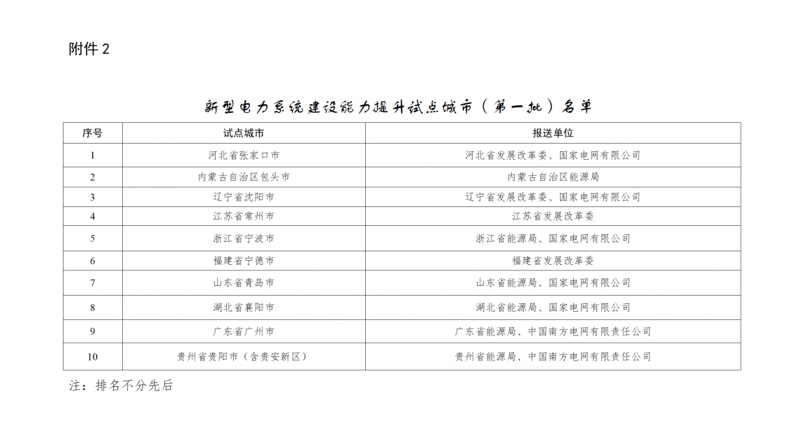 2.新型电力系统建设能力提升试点城市名单(第一批)