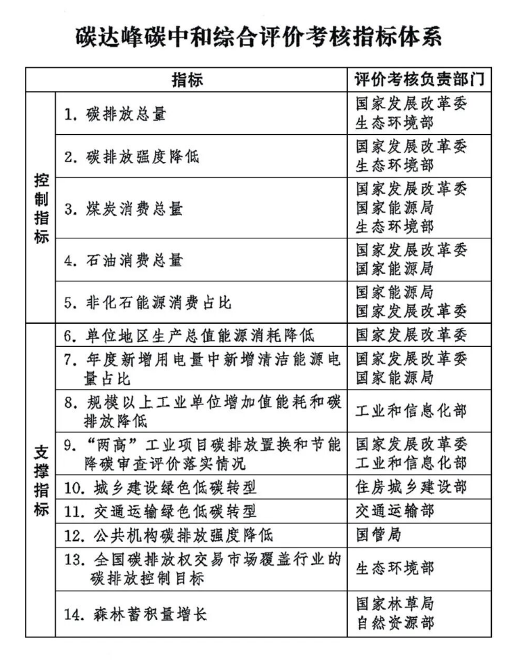 《碳达峰碳中和综合评价考核办法》全文如下。