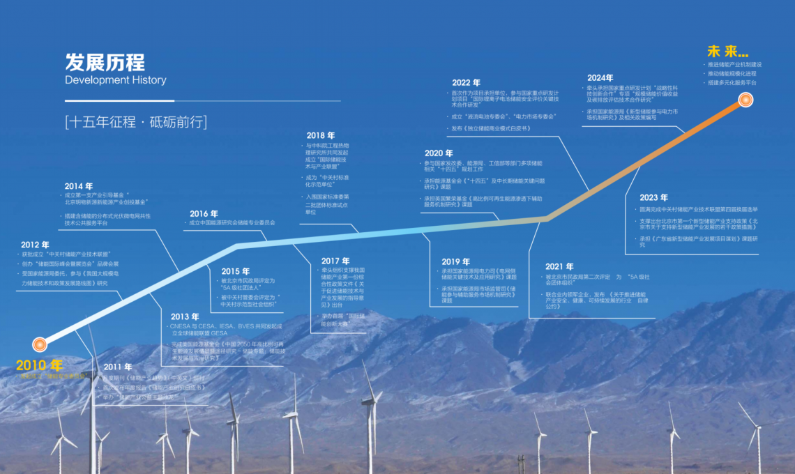 创立于 2010 年 3 月,是中国第一个专注于储能领域的非营利性行业社团组织,致力于通过影响政府政策的制定和储能技术的应用推广,促进产业的健康有序可持续发展。2012年12月,被北京市民政局批准为一级社团组织。自2015年起,连续两次被北京市民政局评为“5A级社会组织”(分别于2015年,2020年获批)。